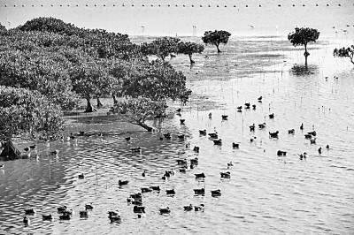 2月1日,群鳥在廣東深圳福田紅樹林濕地棲息。新華社記者 梁旭攝